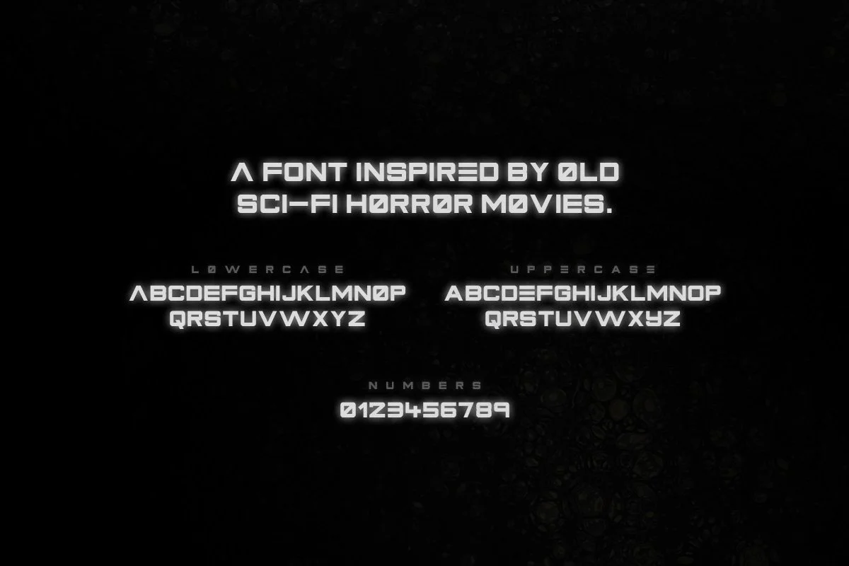 Primal is an industrial futuristic font with alternate letters you can toggle via Caps Lock.